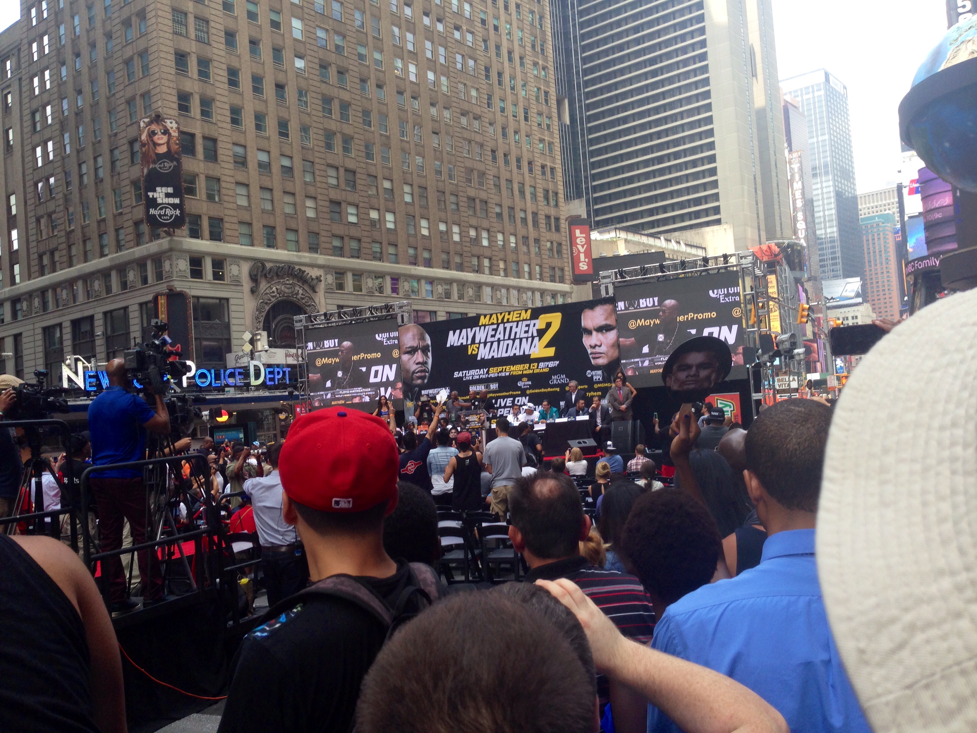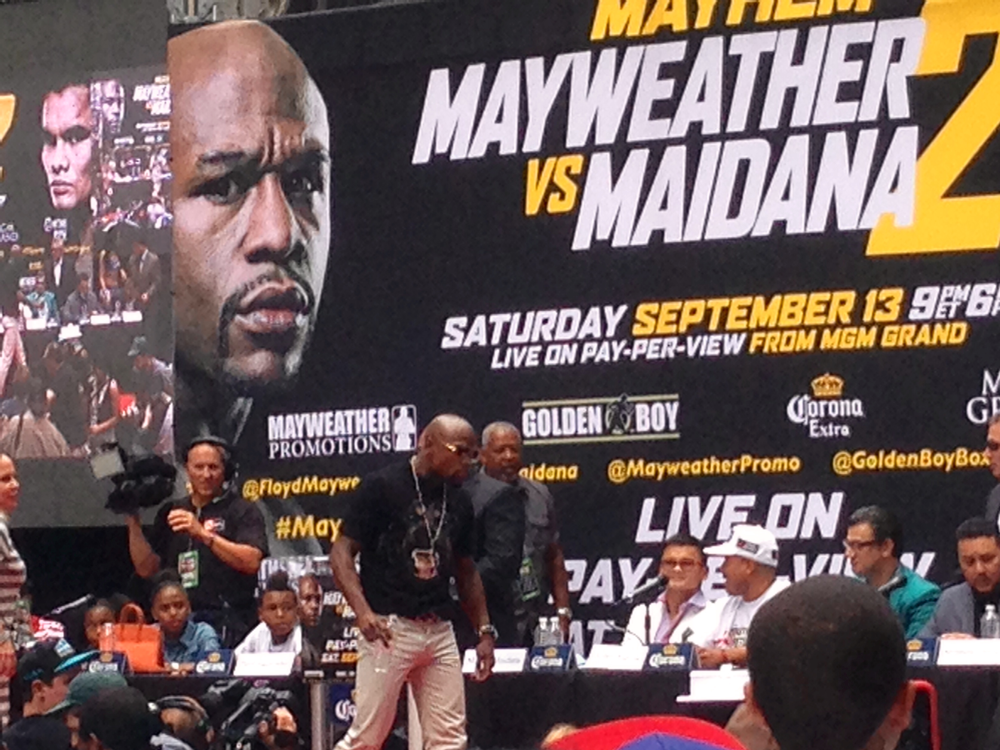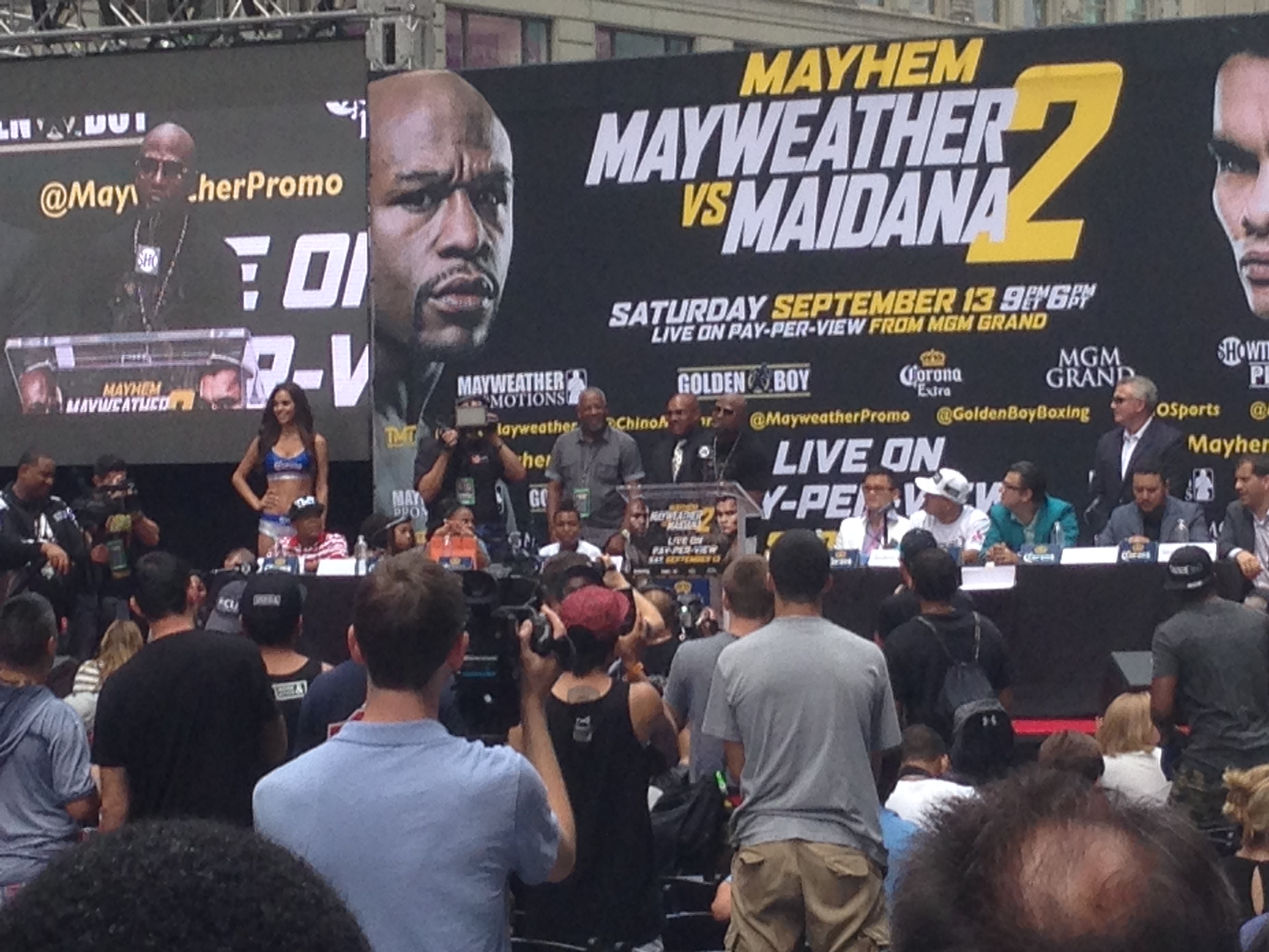 RingsideBoxingEvent.com was on hand today in Times Square as Floyd Mayweather and Marcos Maida kicked off their promo tour for their rematch on September 13th, 2014. Here are pictures from the event: