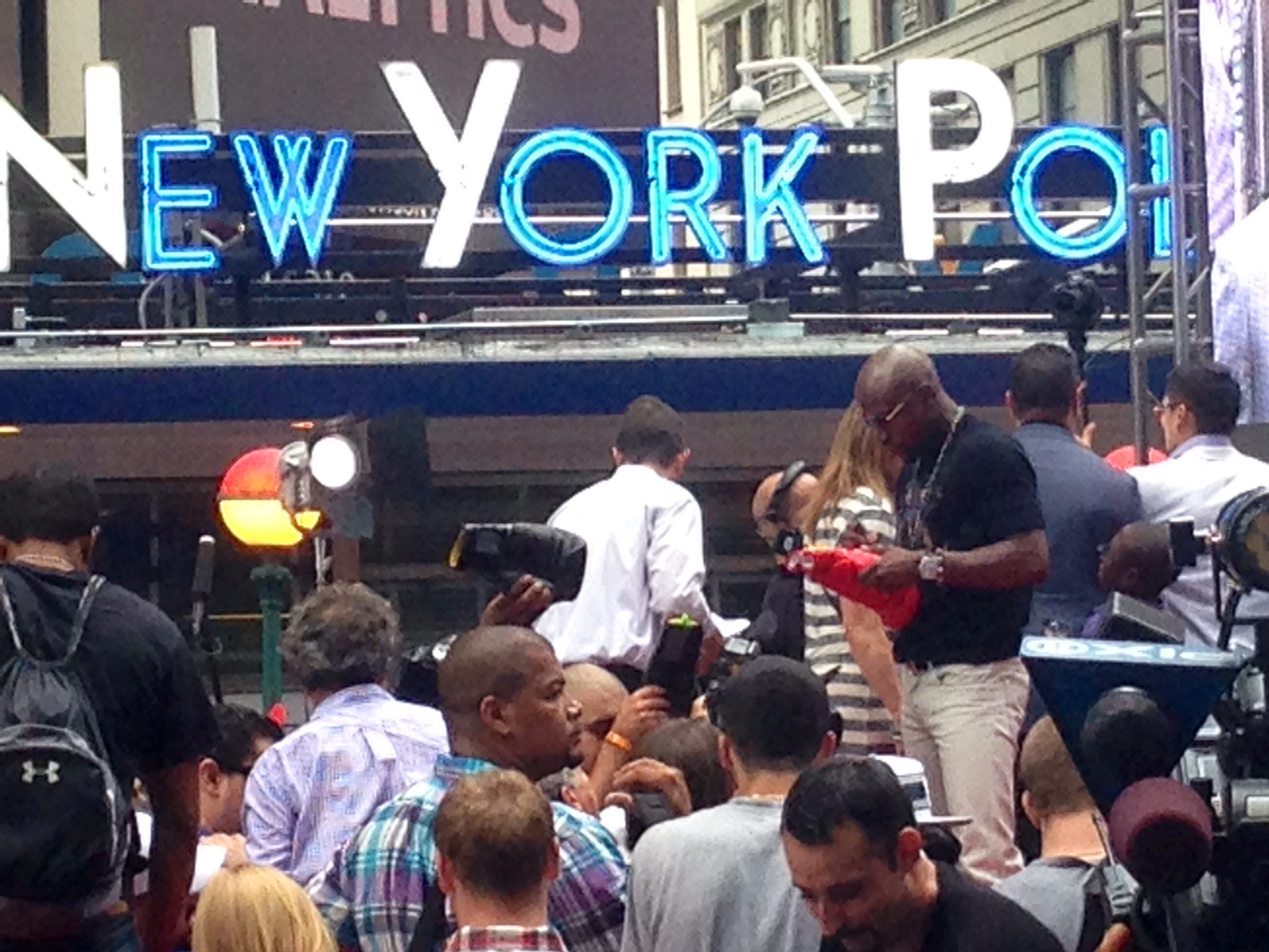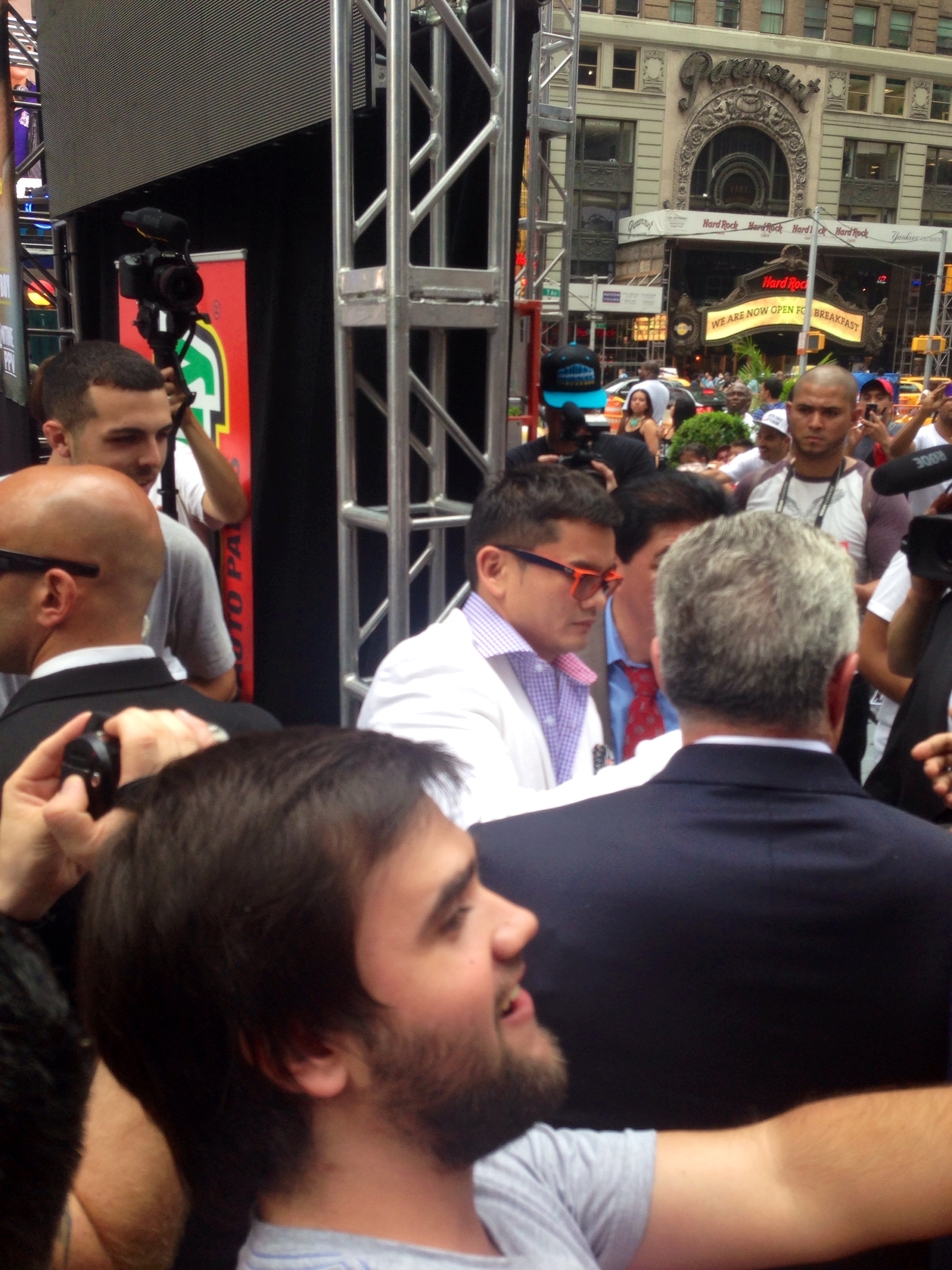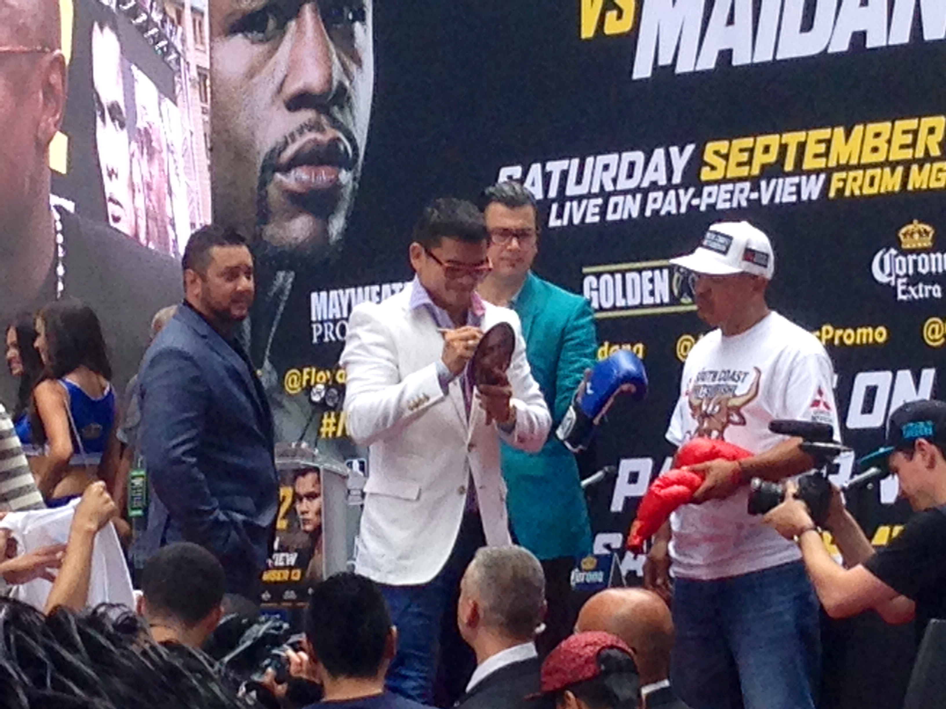 RingsideBoxingEvent.com was on hand today in Times Square as Floyd Mayweather and Marcos Maida kicked off their promo tour for their rematch on September 13th, 2014. Here are pictures from the event: